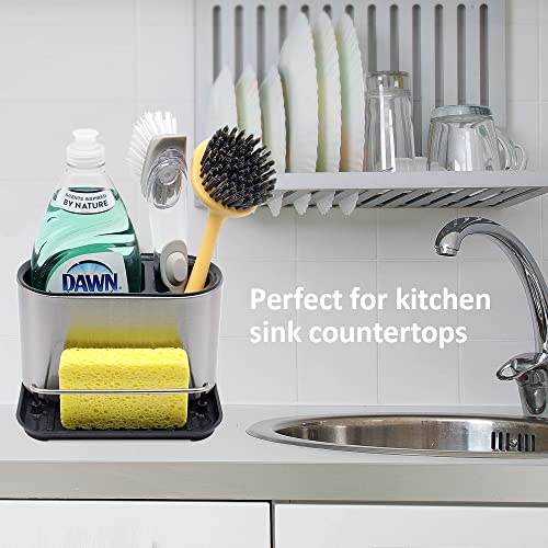 Trendy Union - حامل للحوض من الفولاذ المقاوم للصدأ، منظم حوض لسطح الطاولة، مزود بحامل إسفنجة وحامل فرشاة أطباق مع صينية تصريف من تريندي يونيون