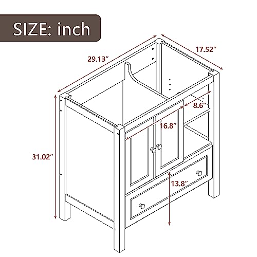 Dolonm - دولاب حمام بدون حوض مقاس 76، قاعدة دولاب فقط، دولاب حمام مع أبواب ودرج، إطار خشبي صلب ولوح من خشب ليفي متوسط الكثافة، سهل التجميع، أبيض من دولونم