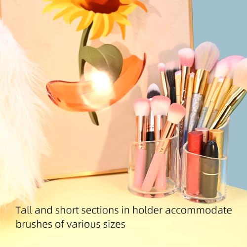 Dolovemk - حامل اكريليك شفاف بـ3 فتحات لتنظيم فرش المكياج وعرض ادوات التجميل والاقلام الرصاص على سطح المكتب من دولوفمك