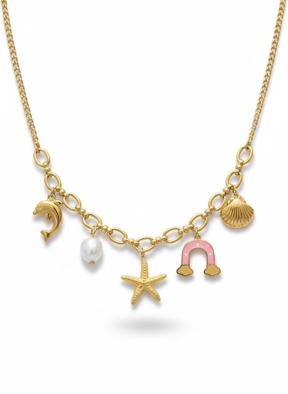 Generic - قلادة أنيقة بتصميم دلفين ونجم البحر