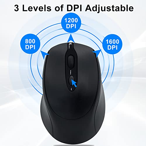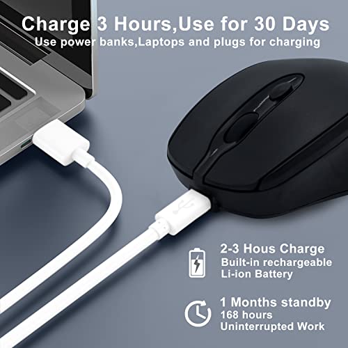 Dolrso - ماوس بلوتوث لاسلكي قابل لإعادة الشحن لأجهزة اللاب توب/اي باد/ماك بوك برو/اير، ماوس صامت محمول ورفيع لجهاز سيرفس برو/الكمبيوتر/لينوفو/تابلت سامسونج من دولرسو، أسود