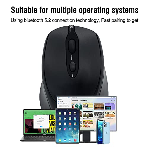 - 【ماوس بلوتوث مع وضع مزدوج (بلوتوث 5.2 + 2.4 جيجاهرتز)】يتيح الماوس اللاسلكي المزدوج الوضع التبديل الحر بين جهازين باستخدام ماوس واحد فقط عن طريق التبديل ببساطة. يمكنه توصيل جهاز واحد عبر البلوتوث وآخر عبر مستقبل USB 2.4 جيجاهرتز. من المهم ملاحظة أنه لا يمكنك استخدام وضع البلوتوث ووضع 2.4 جيجا في نفس الوقت.