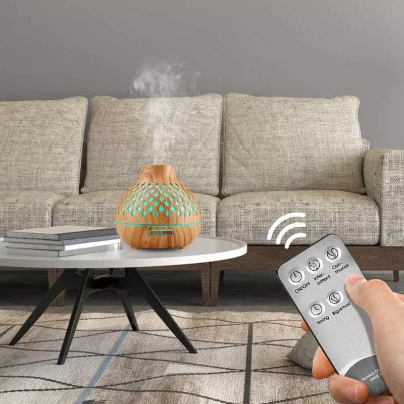 DOMA - فواحة زيوت اساسية بسعة 550 مل، مرطب عطري بالموجات فوق الصوتية مع 7 الوان LED وتحكم بالريموت كنترول ووظيفة التوقف الاوتوماتيكي عن العمل عند نفاذ الماء من دوما