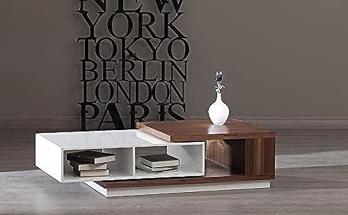 Domani - ترابيزة قهوة من دوماني، لون ابيض وبني، موديل C005، خشب