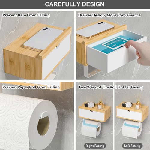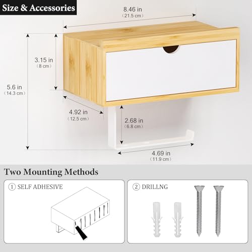 - 【تصميم حديث】: حامل ورق التواليت الحديث مصنوع من مزيج من البامبو الطبيعي والأبيض، فهو مناسب لمجموعة متنوعة من أنماط الديكور المنزلي. عند استخدامه، يمكنك المحافظة على حمامك منظمًا بمظهر فائق مع إضفاء لمسة من الأناقة والراحة من خلال درج الخصوصية الإضافي.