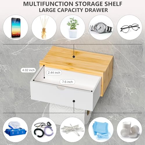 - 【درج كبير السعة】: يأتي حامل ورق التواليت الجداري مع درج تخزين، المقاس الداخلي 19 سم طولًا × 10 سم عرضًا × 6 سم ارتفاعًا، وهو كبير بما يكفي لتخزين حجم كبير من المناديل المبللة أو الأغراض الأنثوية مثل السدادات القطنية وإبقائها مخفية.