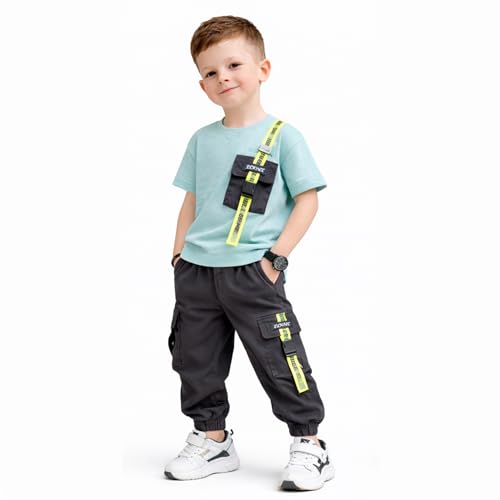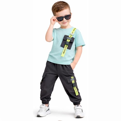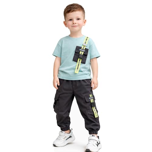 Domeso - طقم ملابس أولادي من Domeso – تيشيرت قطني مع بنطلون – ملابس أطفال كاجوال بعمر 4 / 6 / 8 سنوات للعيد والخروجات