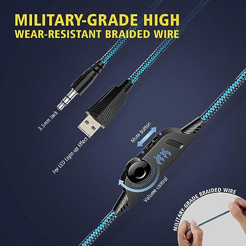 - 🎮【متينة】سماعة الرأس مزودة بوحدة تحكم دوارة في مستوى الصوت وكتم صوت الميكروفون بنقرة واحدة، مما يجعلها أكثر ملاءمة لك للتشغيل والاستخدام. كيبل سماعة الرأس ملفوف بسلك مضفر، والذي يتميز بشد طويل الأمد لتقليل المقاومة الخارجية بشكل فعال، ومجهز بربطة لمنع تشابك السلك.