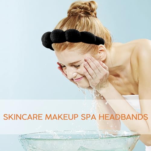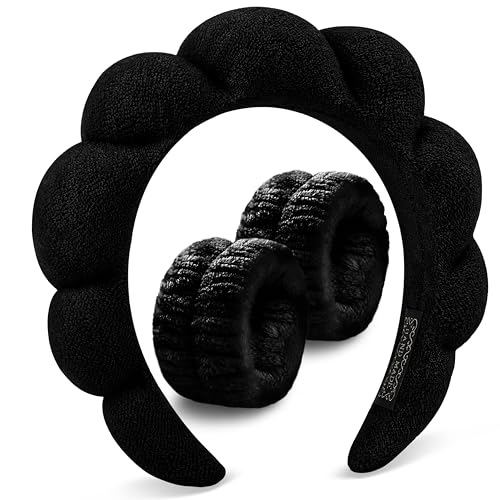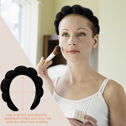 DOMMARE - رباط رأس لغسل الوجه والمعصم والعناية بالبشرة للنساء والبنات المراهقات، شريط رأس بشكل فقاعي لوضع المكياج، شريط شعر منتفخ من قماش تيري، إكسسوار جاهز للشعر من دوماري (أسود)