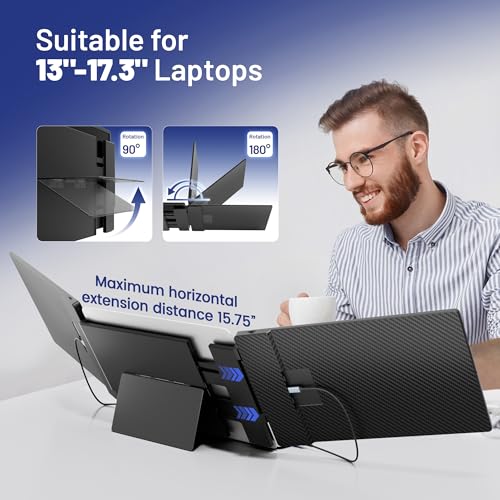 - قم بزيادة إنتاجيتك بنسبة 300% -- يدعم موسع شاشة اللاب توب ثلاثة أوضاع: الوضع الممتد والوضع المكرر ووضع الشاشة الثانية، مثالي للعروض التقديمية للمؤتمرات وتعدد المهام، الحل المثالي للعرض المتزامن والمستقل متعدد الشاشات لمستخدمي اللاب توب، مثالي للاعبين والمبرمجين ومحترفي التمويل والاستثمار والمصممين وأي شخص يحتاج إلى سير عمل أكثر كفاءة..