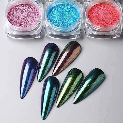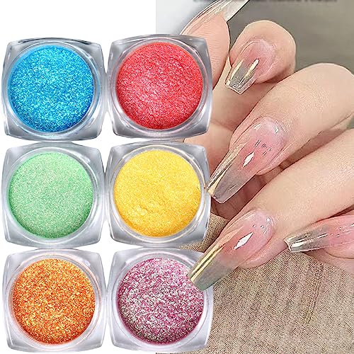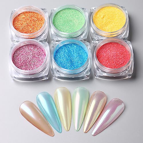 Doneace - مسحوق أظافر لؤلؤي بنمط مراية بتأثير ضوء القمر صبغة كروم معدنية سحرية بلمسة هولوجرافية وتأثير اورورا متلألئ لتصميمات تزيين الأظافر من دونيس، لون متلآلئ، مجموعة من 6 ألوان