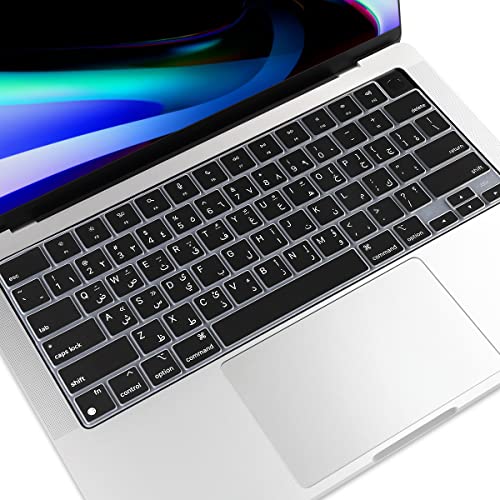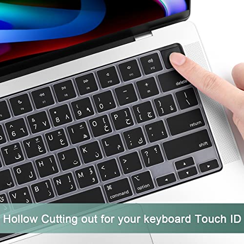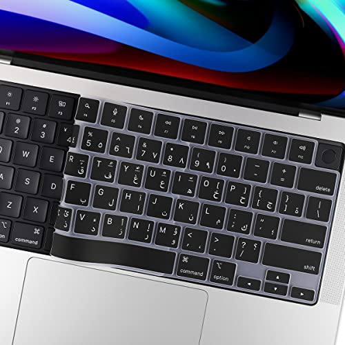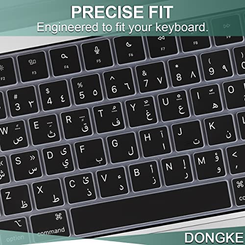 DONGKE - ملصق واقي فاخر من السيليكون الناعم لكيبورد ماك بوك برو 14انش 2021 (A2442 M1 برو/ماكس) وماك بوك برو 16 انش 2021 (A2485 M1 برو/ماكس) بحروف عربي انجليزي من دونجكي - اسود