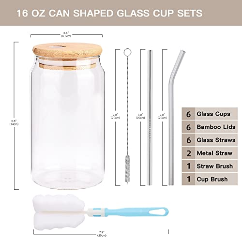 - 【6 قطع من الأكواب الزجاجية على شكل علبة】تتضمن أكواب الشرب مع أغطية الخيزران والقشات 6 أكواب شرب على شكل علبة (القطر - 2.6 انش، الارتفاع - 5.5 انش)، 6 أغطية من الخيزران الطبيعي، 6 ماصات زجاجية منحنية قابلة لإعادة الاستخدام، 2 ماصة من الستانلس ستيل، 1 فرشاة ماصة وفرشاة كوب، سعة مثالية 16 اونصة. مجموعة أكواب زجاجية عائلية مثالية وعملية.