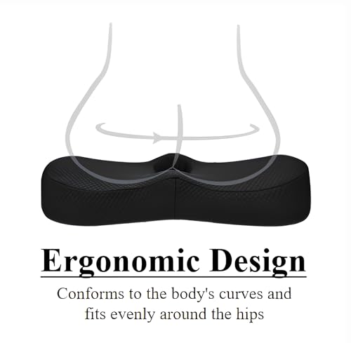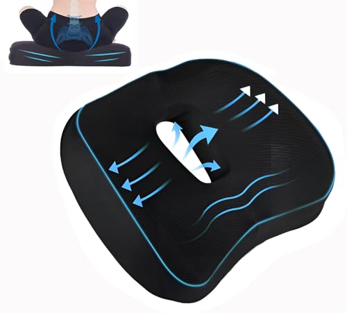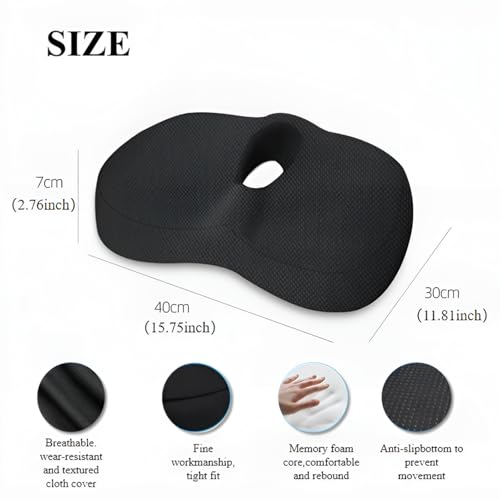 Accmuzzy - وسادة دائرية مجوفة، وسادة مقعد سيارة طبية مصنوعة من فوم ميموري لـتخفيف آلام عظمة الذنب، وسادة لتخفيف الضغط لكرسي المكتب والكرسي المتحرك لقليل آلام عرق النسا والبواسير (أسود)