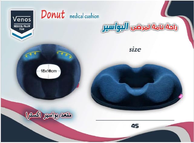 - الأبعاد المثالية: يتميز بقطر خارجي 45 سم مع فتحة داخلية 10 × 18 سم، مما يوفر مقاعد مرتفعة ثابتة توفر إعادة توزيع الضغط المناسب ومحاذاة الوضعية لكراسي المكتب ومقاعد السيارات والكراسي المتحركة