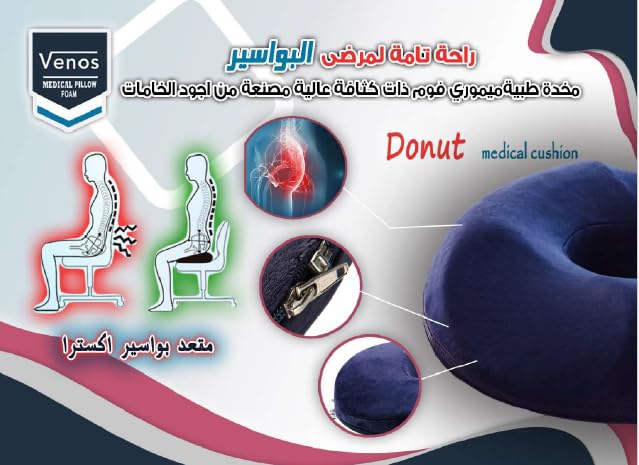 Generic - وسادة طبية على شكل دونات لتخفيف البواسير لتقويم العظام مع فتحة للعصعص، مقعد من الميموري فوم، لتخفيف الام عظم الذنب والوضعية وتخفيف الضغط وتخفيف الام اسفل الظهر، 45 سم - فينوس