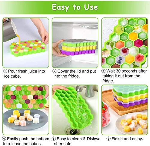 DOOMSDAY - قالب مكعبات الثلج للفريزر من دومزداي، مرن وامن ومصنوع من السيليكون بتصميم خلية النحل، 37 تجويفة