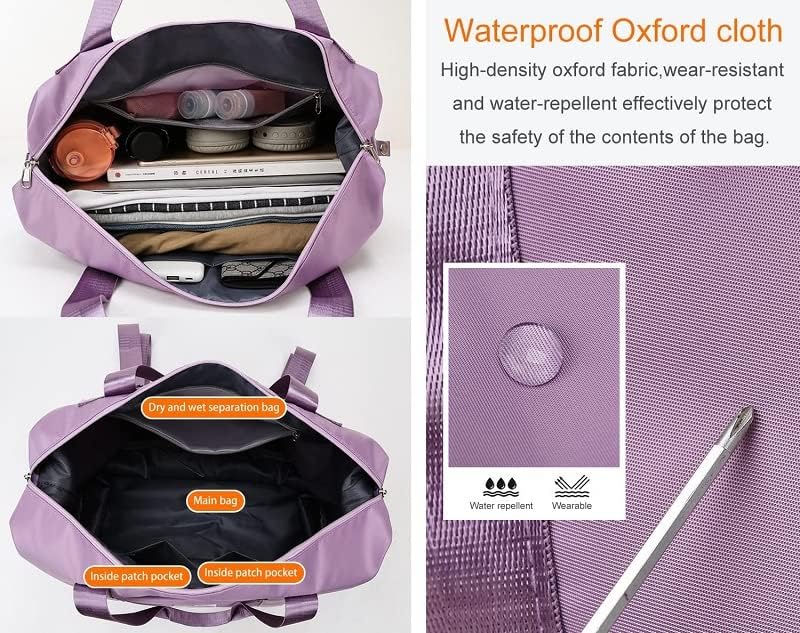 - تحتوي شنطة السفر، المصنوعة من القماش الخشن هذه، على العديد من مساحات التخزين المقاومة للماء التي تسمح لك بفصل الملابس الجافة عن المناشف المبللة وتمنع الخلط بين القطع المتسخة والقطع النظيفة.