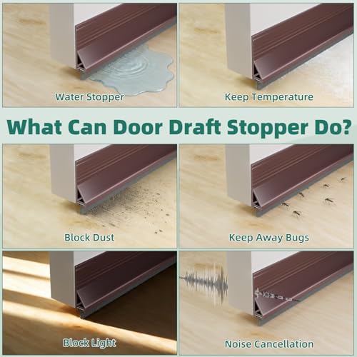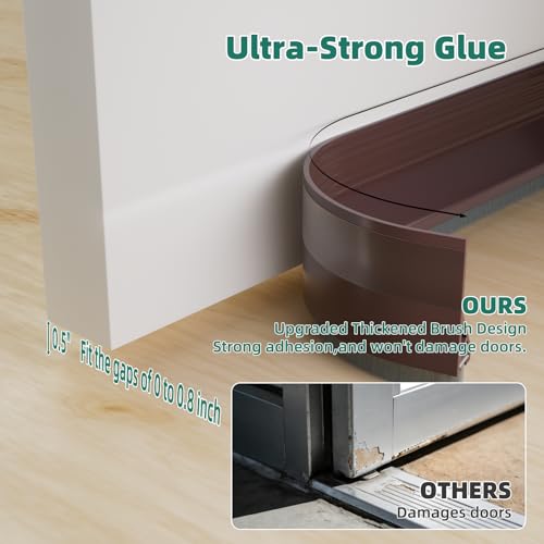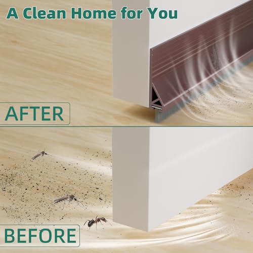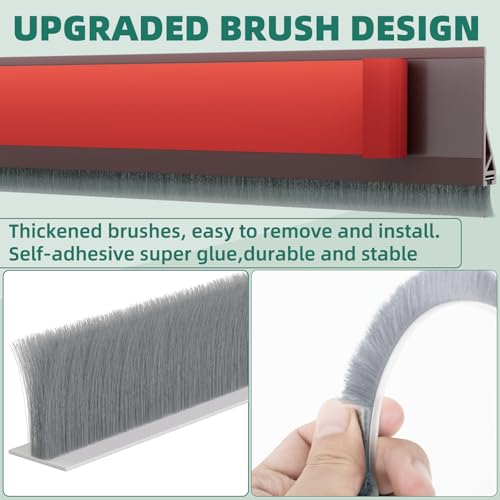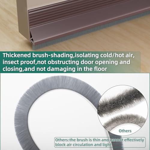 - 【مانع تسرب الأبواب المُحسَّن بفرشاة】 يتميز هذا المانع بفرشاة سميكة وطويلة وعالية الكثافة لتوفير أداء فعّال. تحمي الأرضيات والسجاد عند فتح الباب أو إغلاقه، ما يجعلها مناسبة لجميع أنواع الأرضيات، خصوصًا الأسطح غير المستوية أو المطاطية أو المفروشة بالسجاد أو المطلية.