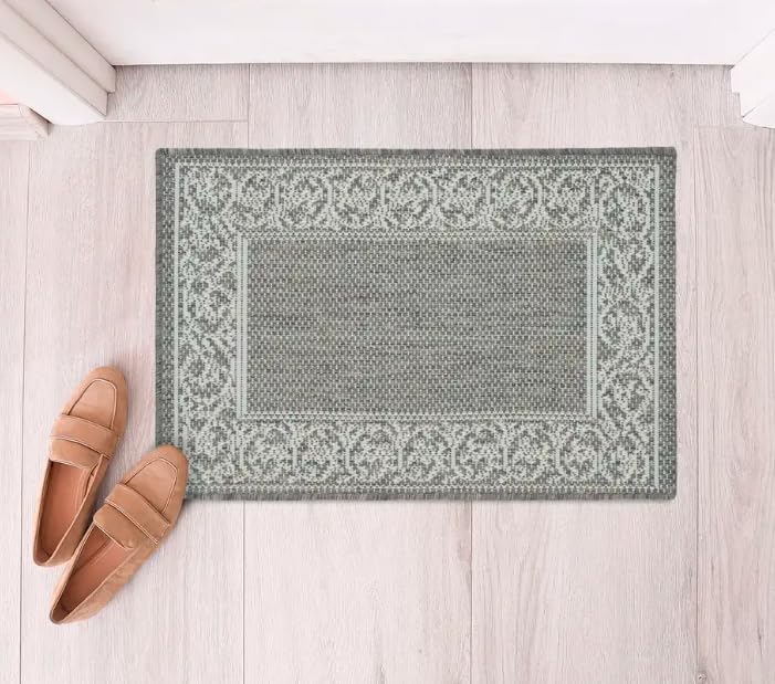 Generic - دواسة باب مع حواف مزخرفة، بيج بني، 50 × 80 سم، سجادة مدخل داخلية وخارجية