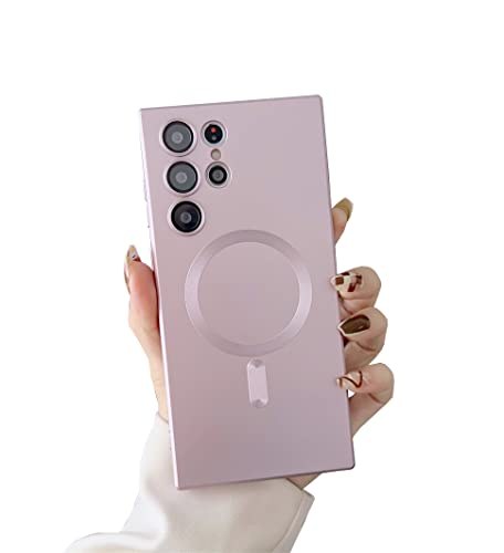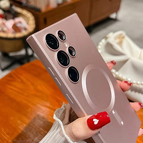 Doowear - دوات جراب مغناطيسي لموبايل جالاكسي S22 الترا [يدعم شاحن ماج سيف] لاسلكي مضاد للخدش والصدمات لحماية كاملة للكاميرا من السيليكون لهاتف سامسونج 6.8 بوصة - ذهبي وردي، مطاط سيليكون نيوبرين .