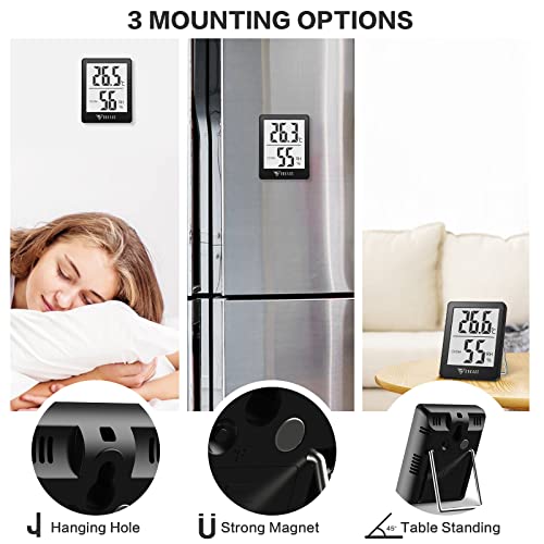 - 【3 خيارات للتثبيت وجهاز ميزان حرارة منزلي قابل للحمل】 مثالي لقياس درجة الحرارة والرطوبة الداخلية، ميزان حرارة رقمي، ومقياس رطوبة يمكن تثبيته على الطاولة أو الحائط أو بالمغناطيس، مع خيارات تثبيت مناسبة لكافة أنواع الغرف. صغير وخفيف بما يكفي لتوفير المساحة وإمكانية حمله خارج المنزل