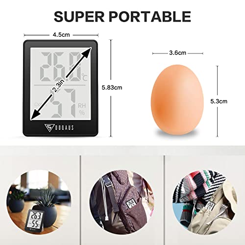 DOQAUS - جهاز ميزان حرارة رقمي للغرفة من دوكياس، جهاز صغير لقياس الرطوبة، ومقياس رطوبة مع أيقونات مريحة، لمراقبة درجة حرارة الغرفة، مناسب للمنزل، والمكتب، وحضانة الأطفال، وغرفة الأطفال، والدفيئة (لون أسود)