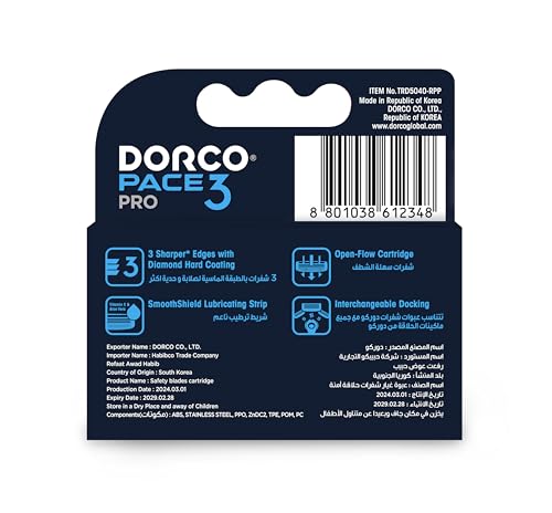 DORCO - ماكينة حلاقة بيس 3 برو ثلاثية الشفرات من دوركو (4 قطع)
