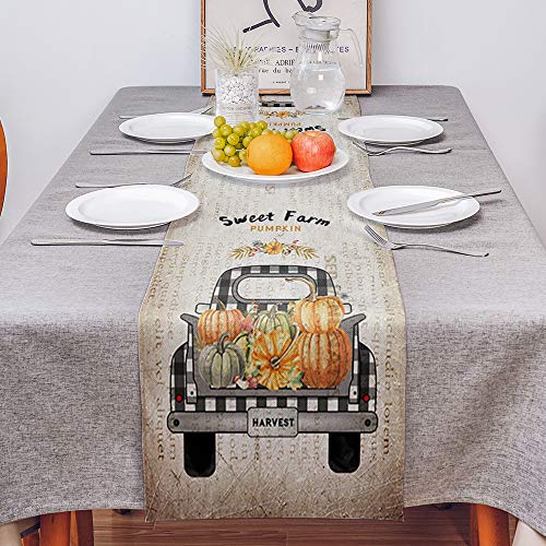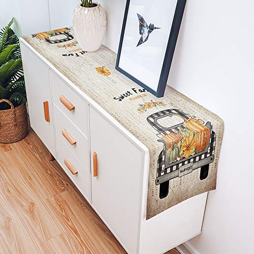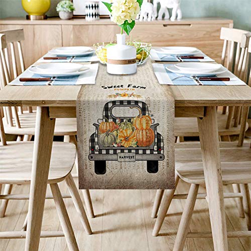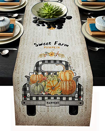 DoremiHome - مفرش طاولة من الخيش الكتاني لتزيين طاولة الطعام للاستخدام اليومي بتصميم يقطينة ومزرعة، اغطية مائدة مقاس 18×72 بوصة لحفلات العشاء والمناسبات، نمط شاحنة رترو للحصاد والخريف وعيد الشكر