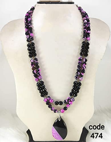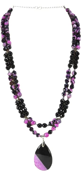 Generic - عقد نسائى دورين من العقيق الطبيعى والانيكس الاسود بقلادات نساء