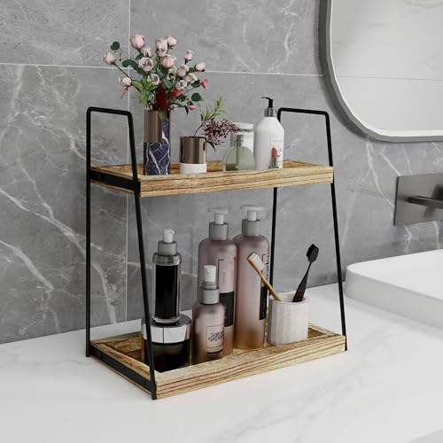 Dorhors - دورهورز منظم طاولة الحمام من طبقتين للتخزين فانيتي لطاولة رف خشبي قائم للحمام وخزانة الملابس والمطبخ