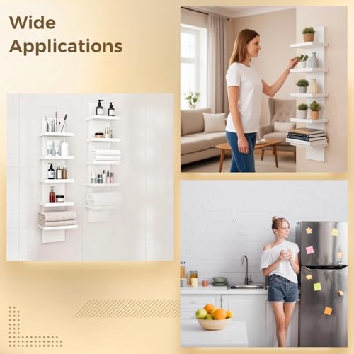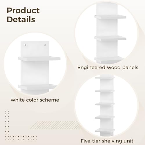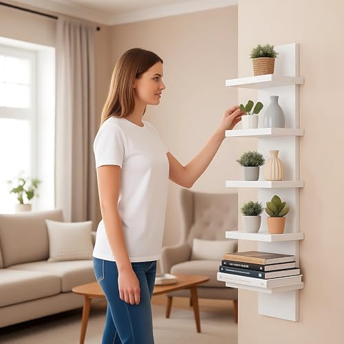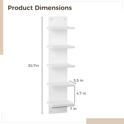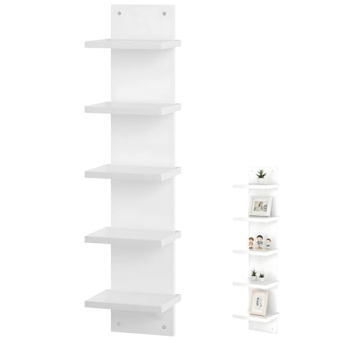 DORMIYA - رف حائط من 5 طبقات من دورميا، ارفف عائمة موفرة للمساحة للتخزين، خشب مركب، عرض عمودي وتصميم برج طويل، منظم ديكور منزلي لغرفة المعيشة وغرفة النوم والمكتب، ابيض
