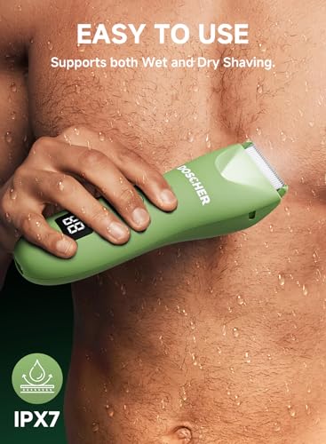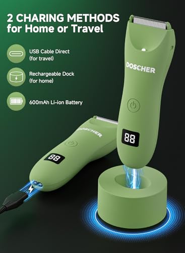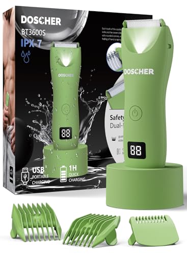 DOSCHER - ماكينة حلاقة كهربائية للجسم للرجال من دوشر، ماكينة حلاقة كهربائية مقاومة للماء للاستخدام الرطب/الجاف، قابلة لاعادة الشحن، ماكينة حلاقة امنة للحلاقة لمدة 60 دقيقة
