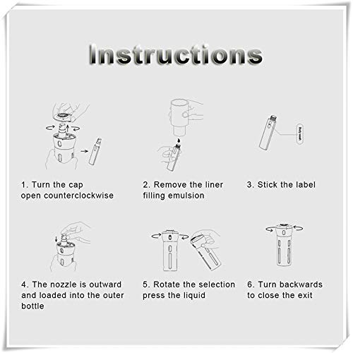 - [سهل الاستخدام] -- قم بالتدوير للتبديل بين الزجاجات واضغط مرة واحدة فقط للرش. ملصقات للتعريف ومكان للملصق لتحديد محتويات الزجاجة، قياس واضح لسهولة التحقق من حجم السائل المتبقي