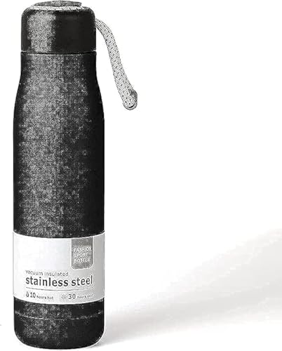 Generic - زجاجة مياه من دوسجت، مصنوعة من الستانلس ستيل 304 مانعة للتسرب بطبقة مزدوجة مفرغة من الهواء، خالية من BPA وصديقة للبيئة، كوب معزول يحافظ على الماء الساخن او البارد. اسود، 500 مل