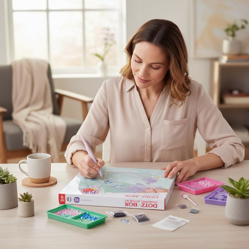 - تتضمن لوحة قماشية مطبوعة مسبقًا وجميع أدوات الرسم الماسية الضرورية.