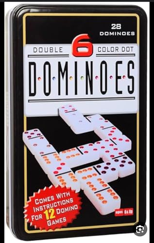 Generic - دومينو ملون مزدوج 6، مجموعة 28 قطعة، نقاط متعددة الألوان، علبة معدنية سوداء، 12 لعبة مختلفة، مناسب للأطفال فوق 6 سنوات، مع تعليمات اللعب، 20×12×3 سم