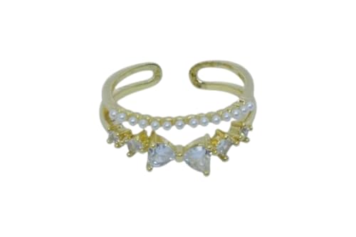 Generic - خاتم مفتوح من الستانلس ستيل بتصميم فيونكة مزدوجة - ذهبي