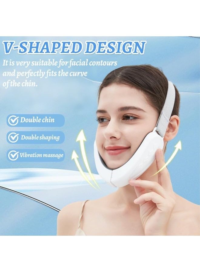 Generic - جهاز تصغير الذقن المزدوجة وحزام تجميل كهربائي لتشكيل الوجه على شكل حرف V، جهاز تدليك ذكي لشد الوجه مع ضوء أزرق، 6 أوضاع و12 مستوى، مناسب لشد البشرة المترهلة والعناية اليومية