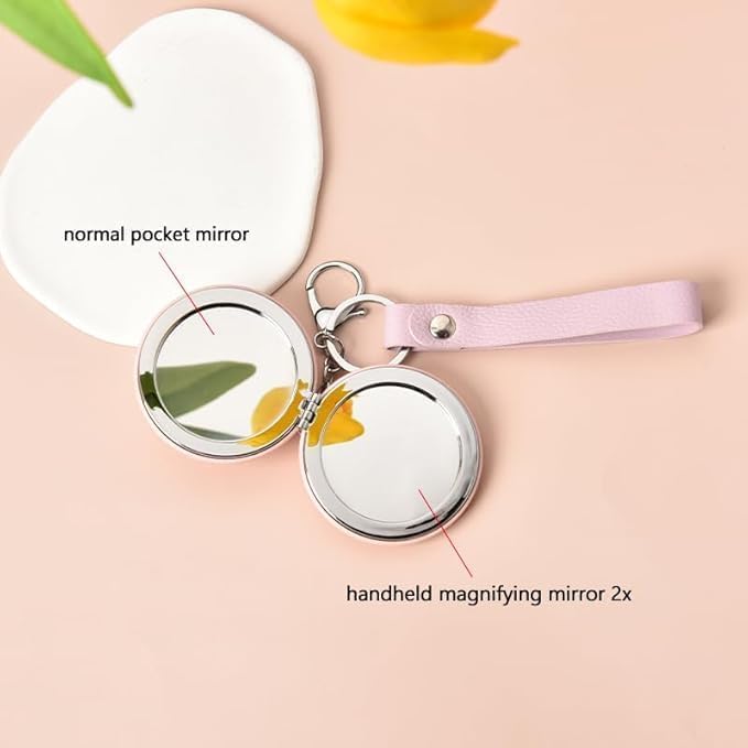 Generic - مرآة جيب مدمجة مزدوجة مع حزام جلد، متعدد الون
