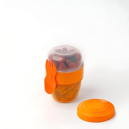 Generic - كوب مزدوج بتصميم لانش بوكس مزدوج صلب بسعة 200 مل في الجزء العلوي و300 مل في القاع، بالإضافة إلى غطاء إضافي للوجبات الخفيفة مثل الزبادي والتوت والحمص والصلصات