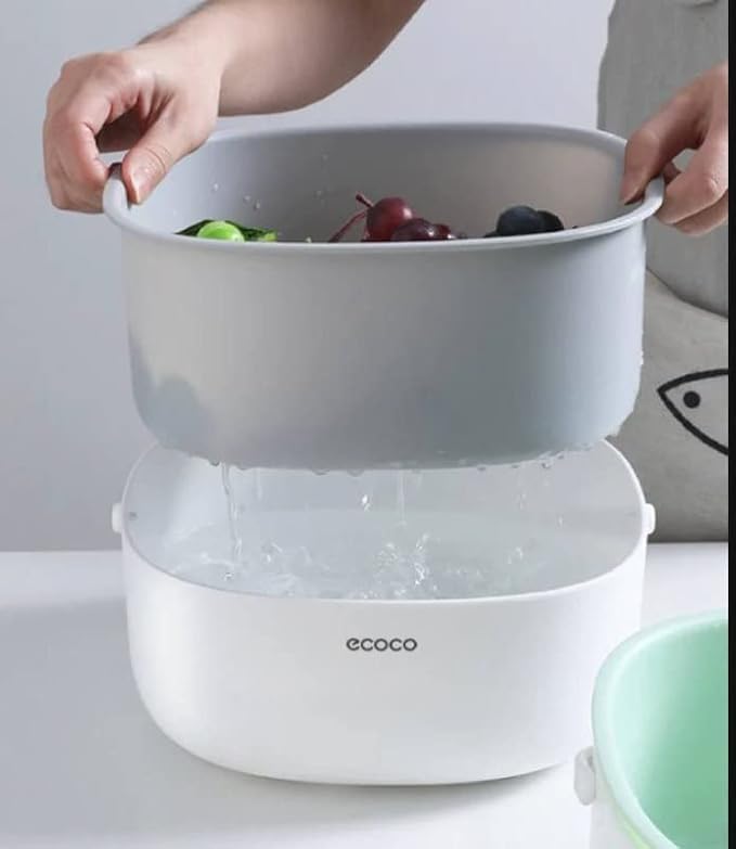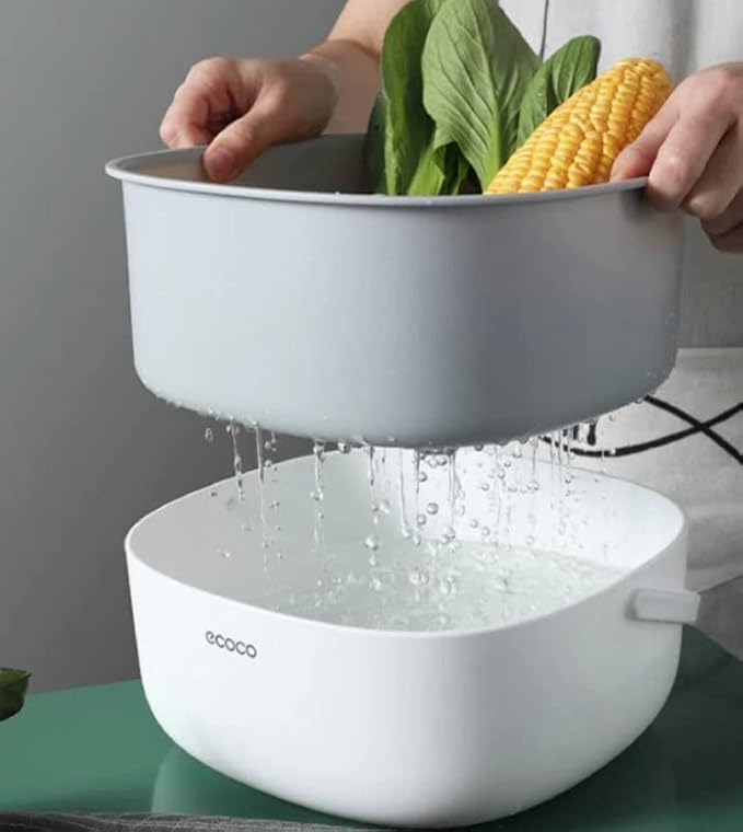 - تصميم مزدوج للتصريف: يتميز بفتحتين تصريف فعالين يسمحان بإزالة الماء بسرعة مع الحفاظ على الفواكه والخضروات