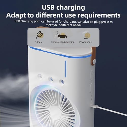 - مروحة تبريد متعددة الوظائف - مروحة تبريد مكتبية متقدمة للصيف تجمع بين 3 وظائف كمروحة قوية ومرطب هواء الغرفة وللتبريد السريع. يمكنك تعبئة خزان المياه بالماء والثلج لإنتاج هواء بارد ومنعش بسرعة. تنتج الموجات فوق الصوتية رذاذًا رقيقًا أكثر برودة من المروحة الباردة ولا تبرد كمكيف هواء. تحافظ على كمية كافية من الهواء وتتميز بتأثير ترطيب.