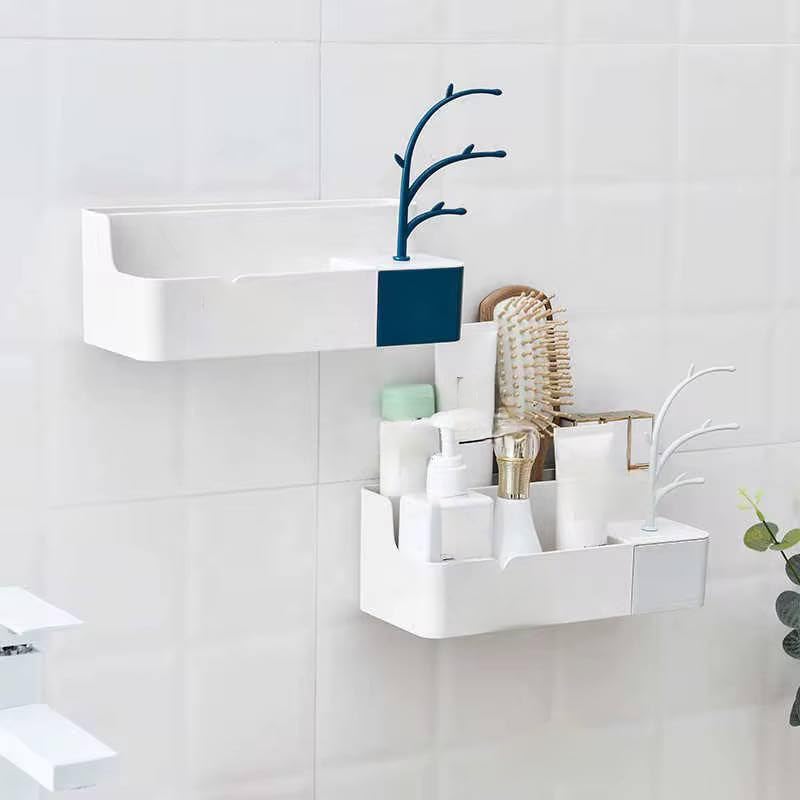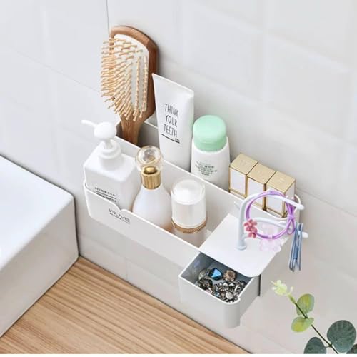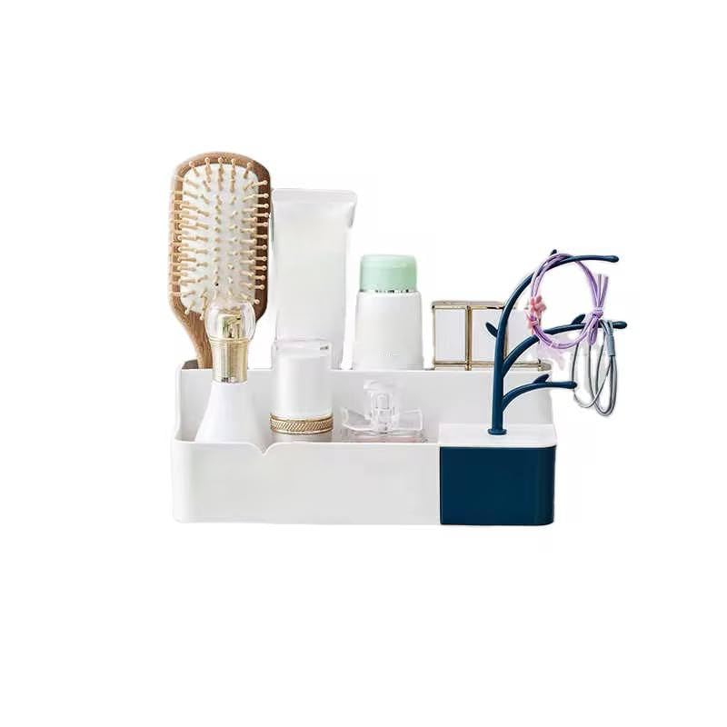 Generic - رف ومنظم الكريمات 2خانة مزود بدرج شجرة اكسسورات لصق دبل فيس