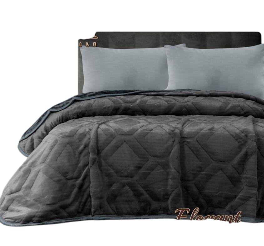 Generic - بطانية دبل فيس طبقتين، جاكار حفر وفرو، رمادي، 220×240 سم، 4 كجم
