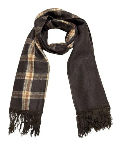 Scarf Collections - سكارف شتوي صوف بوجهين (سادة ومخطط/نقشة كاروهات/مربعات)، سكارف وكوفية وشال للرجال والنساء - مقاس صغير 30x150 سم