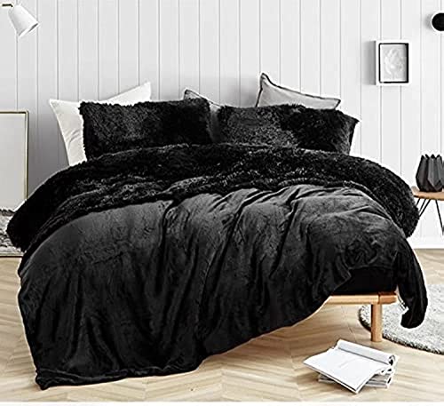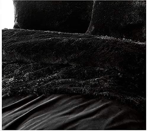 Other - حجم مزدوج/كامل,فرو صناعي,نمط لون موحد,اسود - مجموعات لحاف السرير