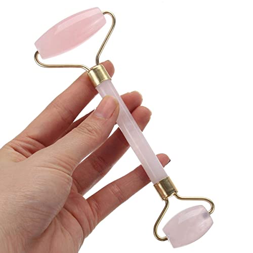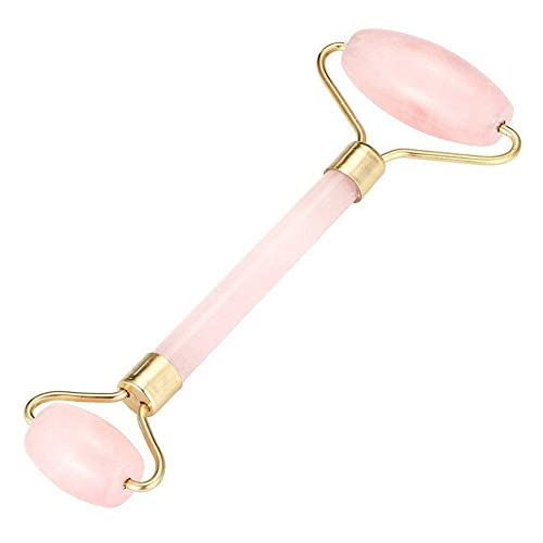 غير معروف - بكرة تدليك مزدوجة الراس طبيعية روز كوارتز كريستال حجر اليشم مضاد للسيلوليت للتجاعيد للوجه والجسم اداة صحية بينك، موصل بسلك كهربي