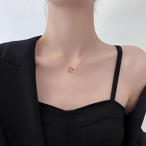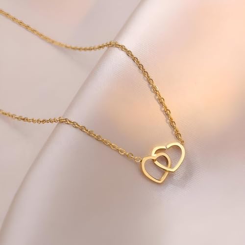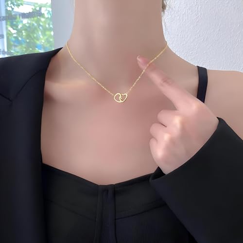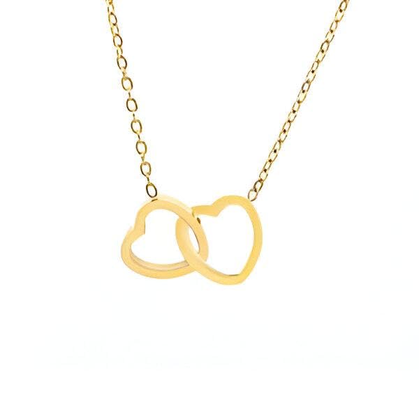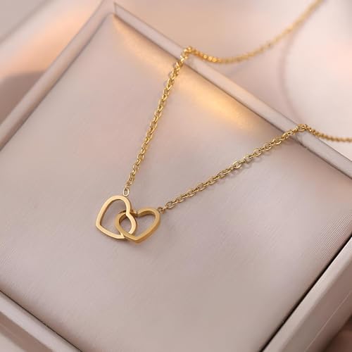 Generic - عقد بقلب مزدوج - قطعة مجوهرات ذهبية متطورة للنساء، هدية عيد ميلاد مثالية للبنات، اكسسوار عصري وانيق للمناسبات الخاصة