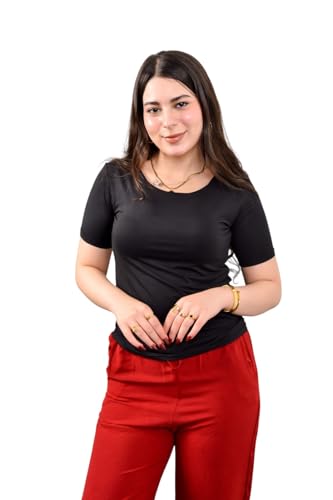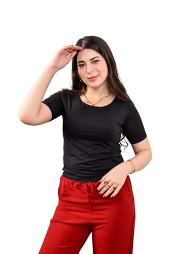 Generic - توب بيسيك بطبقة مزدوجة، كم قصير، اسود، قماش ناعم، كاجوال مقاس واحد